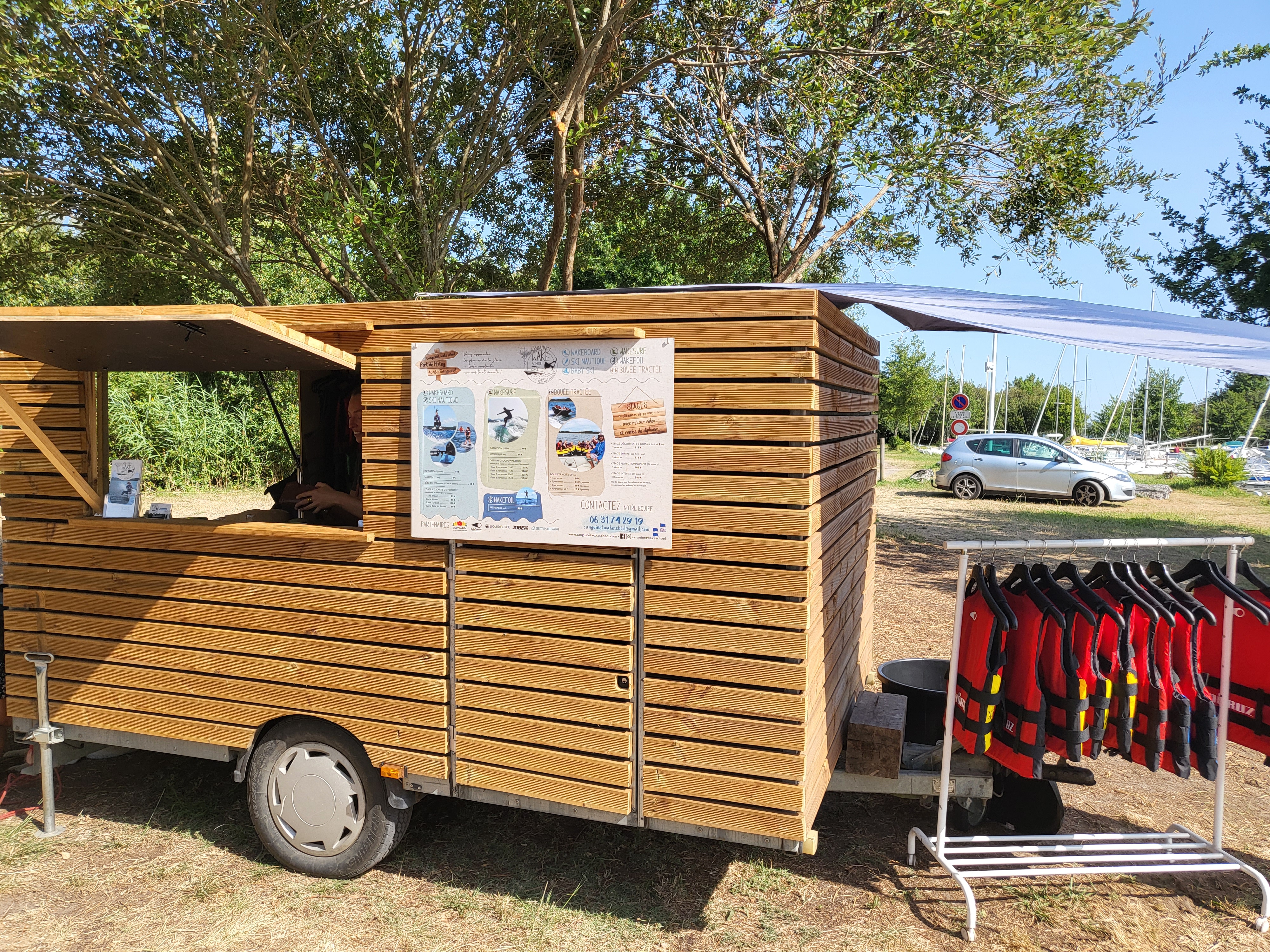 Posté le 31/08/2023 à 16:51"Super spot de wake (mais aussi bouée tractée, wakesurf, wakefoil, ski nautique, babyski des 4 ans), géré par Alexandra et Mathieu, également moniteurs de ski et de snowboard l’hiver. Nous avons fait une session d’initiation pour notre fils de 7,5 ans et une session pour chaque adulte. Mathieu est hyper pédagogue, nous nous sommes régalés. Notre fille de 3 ans a pu nous accompagner sur le bateau et faire une petite sieste. Au top. On va revenir :)"